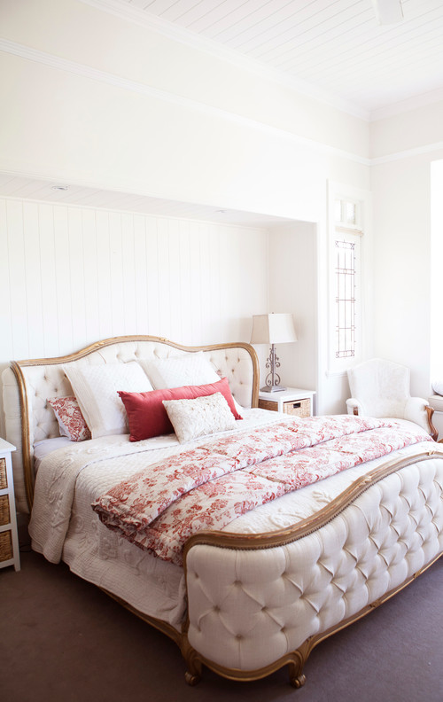 Country yatak odası dekorasyonunda krem, beyaz ve pastel gibi renkler seçilebilir.