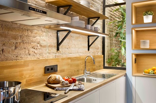 Mutfak tezgah arasında fayans, seramik, cam, ahşap, doğal taş veya mermer malzemeleri kullanabilirsiniz. Duvarlarda boya yanında, duvar kağıdı veya doğal taş tercih edebilirsiniz. Kara tahta modeli duvar kağıtları le not yazabileceğiniz duvarlar oluşturabilirsiniz.