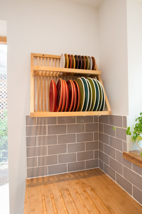 Mutfak duvarlarınızda açık raflardan yararlanabilirsiniz. Raflara yerleştireceğiniz eşyalar ile ekstra yer kazanarak küçük mutfağınızı daha kullanışlı hale getirebilirsiniz. Ayrıca bu raflar, mutfağınızı süsleme amaçlı da hoş bir görünüm sağlayacaktır.