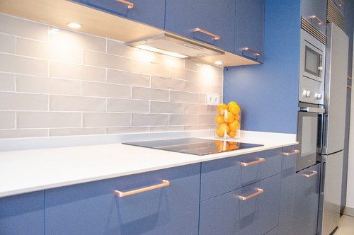 Mavi mutfak dolaplarında kapak seçimi sade ahşap masif, suntalam, mdflam, membran, parlak(high gloss), akrilik veya lake şeklinde yapılabilir. İki renkli mutfak dolabı tercihinde beyaz ve gri renk ile birlikte mavi renk dolaplar kullanmayı düşünebilirsiniz.