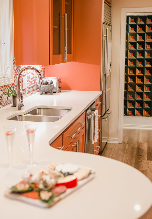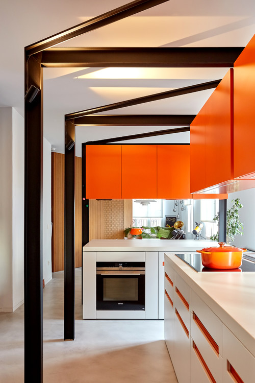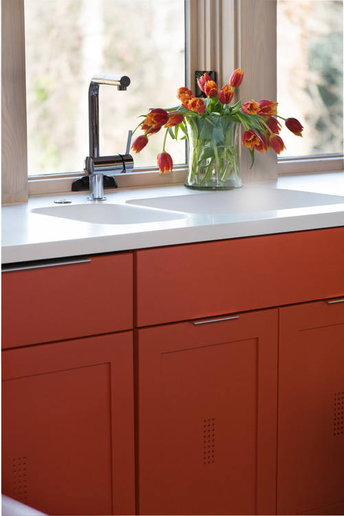Turuncu sıcak bir renktir ve kullanıldığı ortama yakışan bir renktir. Mutfakta enerjim yükselsin diyorsanız turuncu renk mutfak dolapları öneriyoruz.