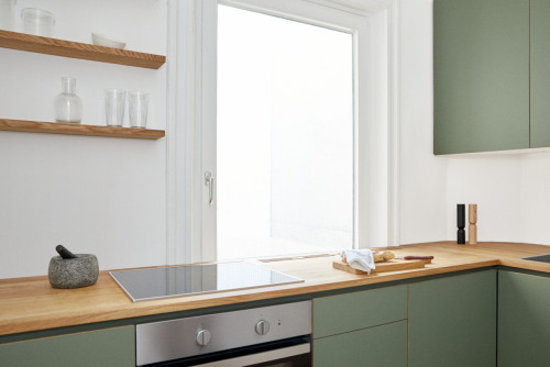 Doğada en çok gördüğümüz yeşil renk, özel bir tasarım isteyenler için önereceğimiz mutfak dolap rengi.
