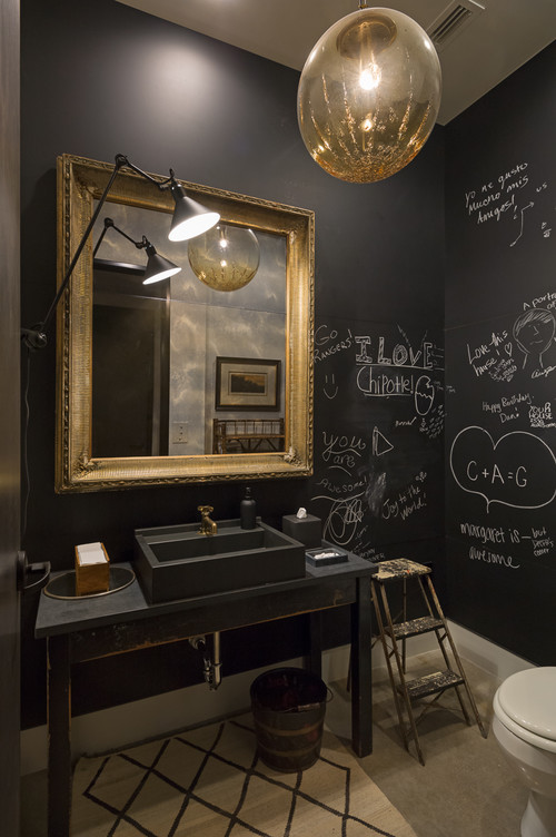Siyah renkle dekore edilmiş banyolarda aydınlatma konusunda çeşitliliğe önem verilmelidir. Başta belirtilen, iç karartıcı ve bunaltıcı olma olayı çoğu zaman aydınlatmayla giderilebilir. Gümüş sarkıt lambalar veya altın renkli avizeler bu banyolar için biçilmiş kaftan.